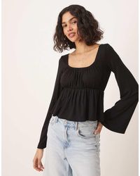 Tops by ASOS DESIGN Square neck Long sleeves Ruched bust Regular fit. Viscose/Elastane. Colour: white