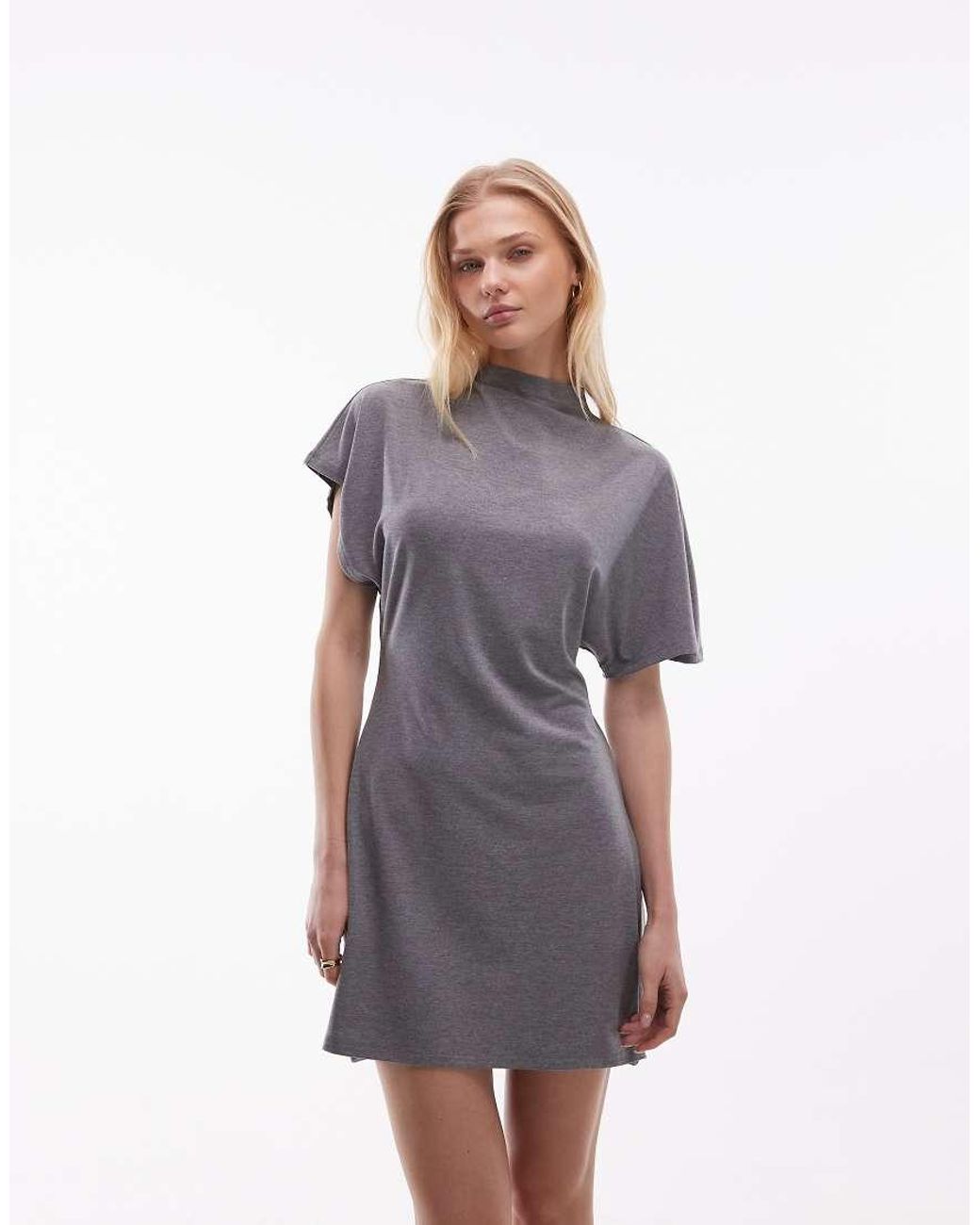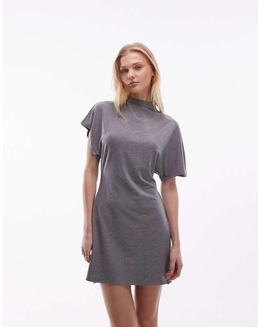 Women's Grey Funnel Neck Batwing Sleeve Mini Dress