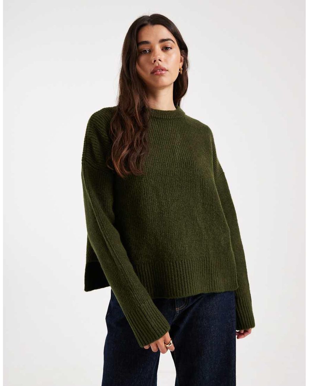 Jumpers & Cardigans by ASOS DESIGN Crew neck Drop shoulders Long sleeves Ribbed trim Step hem detail Relaxed fit. Acrylic/Polyester. Colour: green