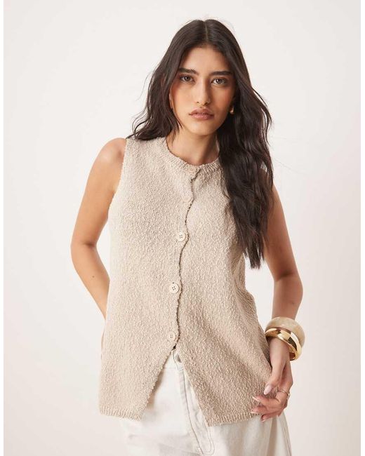 Asos Design Curve Knitted Crew Neck Longline Boucle Waistcoat - Brown