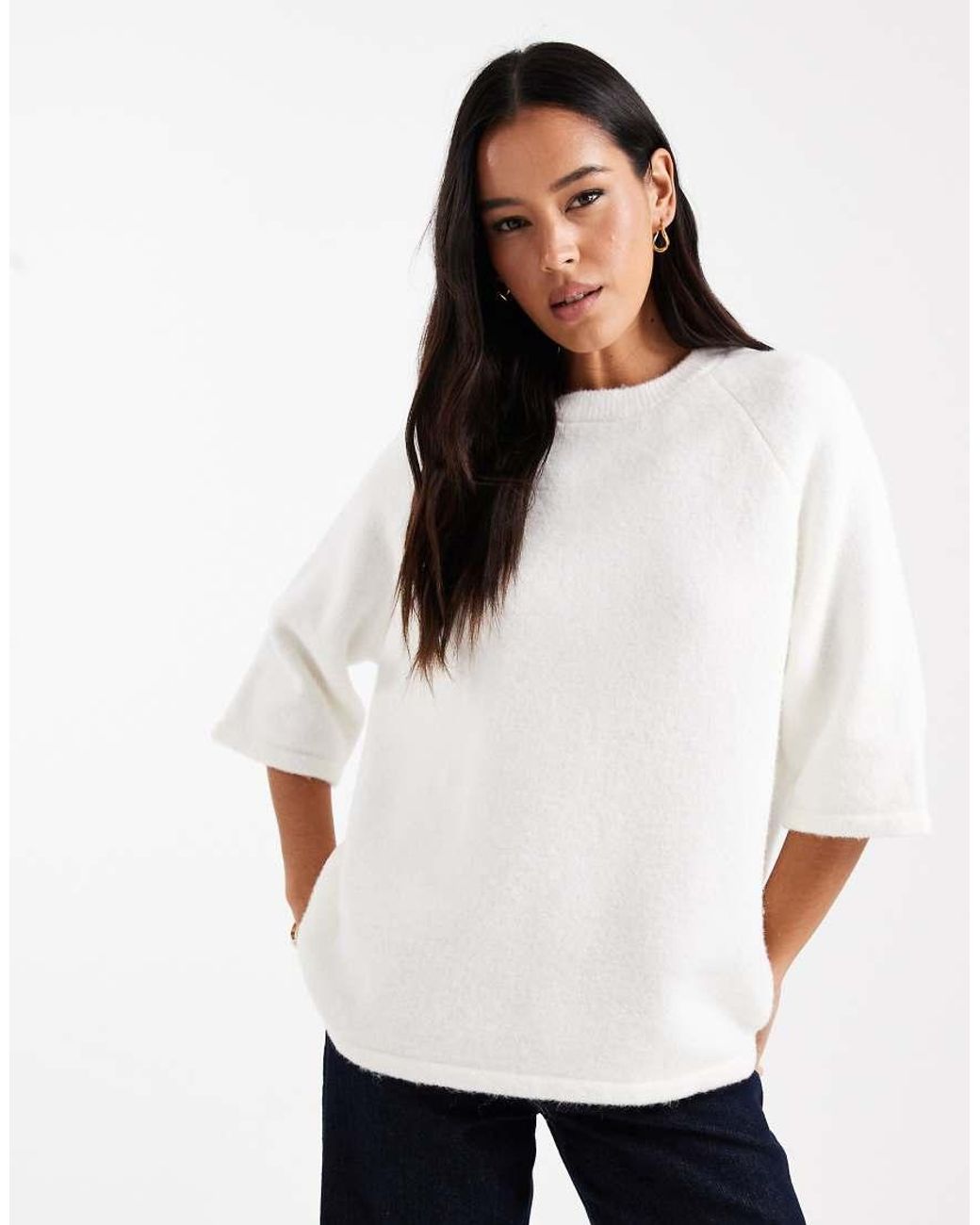 Tops by ASOS DESIGN Plain design Half sleeves Crew neck Oversized fit. Colour: white