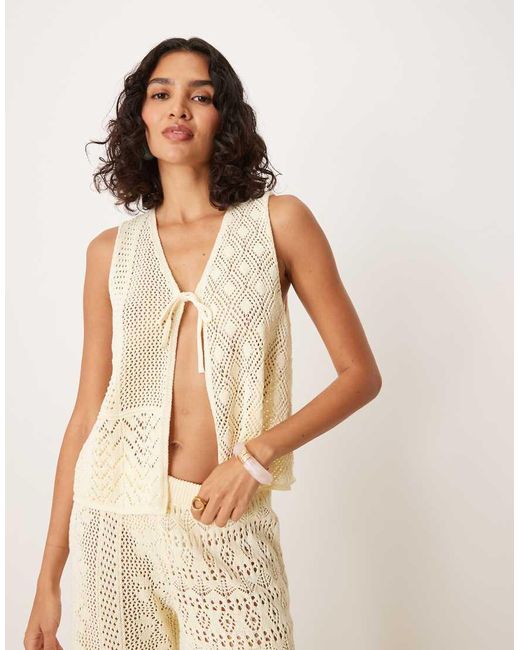 Crochet Knit Tie Front Cardigan Co-ord - Natural