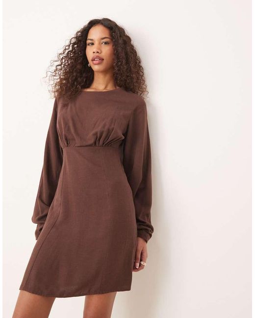 Dresses by ASOS DESIGN Plain design Round neck Long sleeves Regular fit. Viscose/Linen. Colour: brown