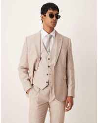 Suits by ASOS DESIGN Notch lapels Padded shoulders Single-breasted style Two-button fastening Pocket details Slim fit. Polyester/Linen/Viscose/Elastane. Colour: blue