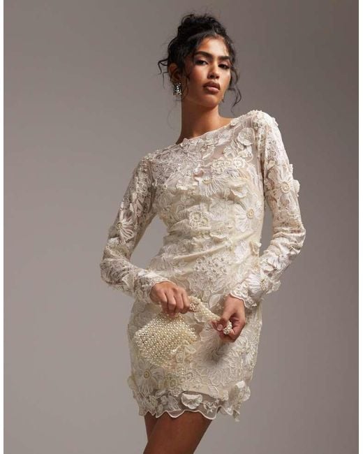 Women's Brown Long Sleeve Embroidered Mini Wedding Dress