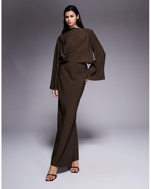 - Long Sleeve Tucked Waist Bias Maxi Dress