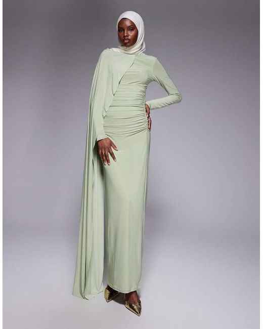 - Long Sleeve With Drape Detail And Ruching Maxi Dress