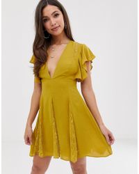 Dress by ASOS DESIGN, Worth making plans for, Plunge neck, Ruffle sleeves, Lace inserts, Zip-back fastening, Regular fit, Just select your usual size. This is ASOS DESIGN – your go-to for all the latest trends, no matter who you are, where you're from and what you're up to. Exclusive to ASOS, our universal brand is here for you, and comes in all our fit ranges: ASOS Curve, Tall, Petite and Maternity. Created by us, styled by you.