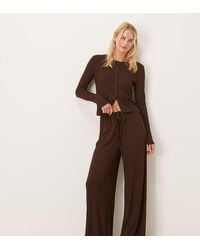 Lingerie & Nightwear by ASOS DESIGN Low rise Elasticated waistband Fold-over panel Flared slim fit Colour: brown