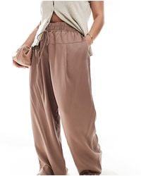 Trousers & Leggings by ASOS DESIGN Mid rise Elasticated drawstring waist Side pockets Wide leg. Colour: brown