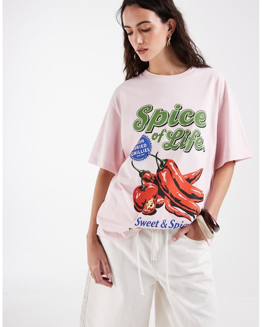 Asos Design Curve Oversized T-shirt With Chilli Graphic - Pink