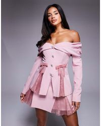 Blazers & Suit Jackets by ASOS Luxe Off-shoulder style Notch detail Long sleeves Faux-pearl details Zip-back fastening Regular fit. Colour: grey