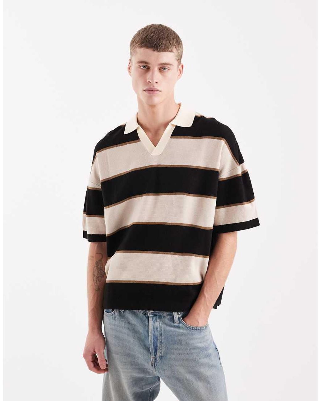 Polo Shirts by ASOS DESIGN Stripe design Polo collar V-neck Short sleeves Relaxed fit