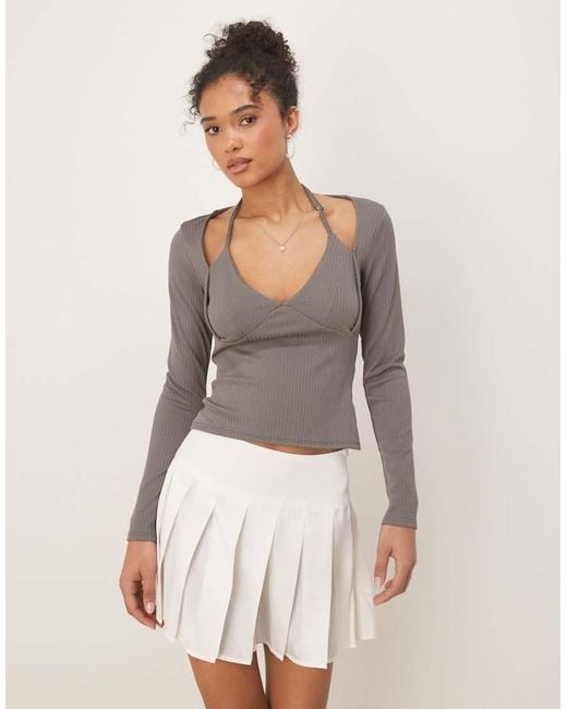 Tops by ASOS DESIGN V-front Halterneck style Long sleeves Slim fit. Colour: grey
