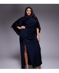 - Satin Maxi Dress With Extreme Drape Sleeve And Open Back