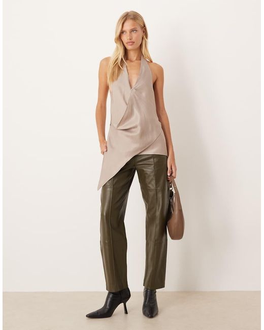 Tops by ASOS DESIGN Plain design Halterneck style Open back Asymmetric hem Regular fit. Colour: natural