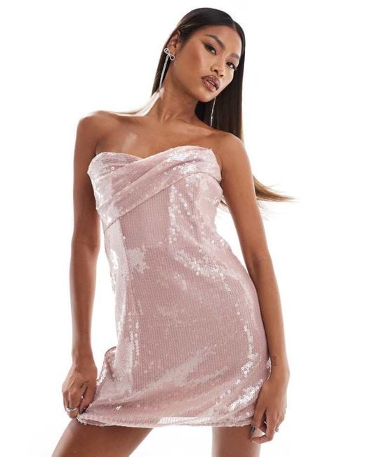 Women's Pink Sheer Sequin Draped Bandeau Mini Dress