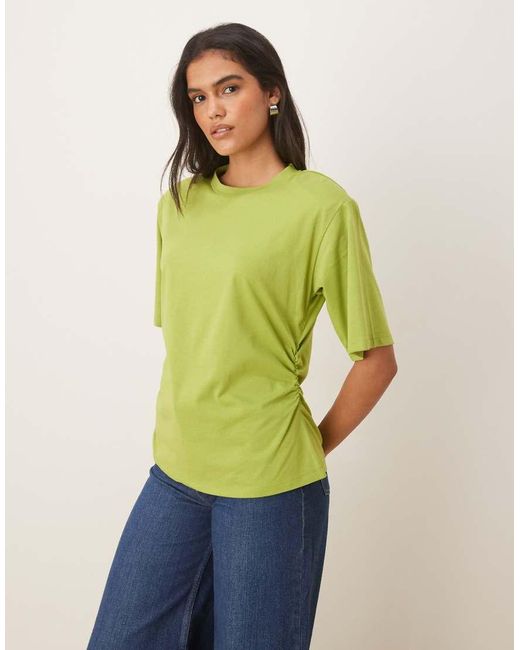 Tops by ASOS DESIGN Plain design Crew neck Short sleeves Shoulder padding Cinched waist Regular fit. Cotton. Colour: green