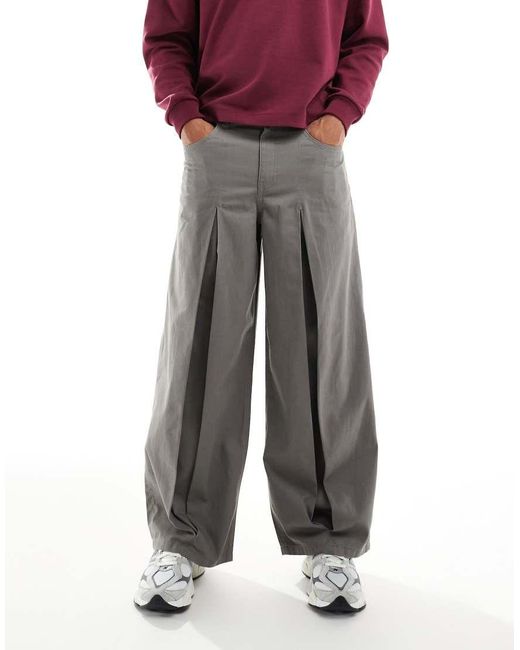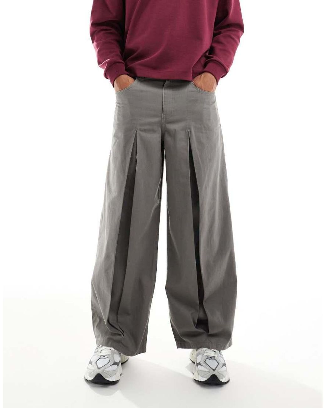 Trousers & Chinos by ASOS DESIGN Regular rise Side and back pockets Belt loops Pleat detailing Super baggy fit. Colour: grey
