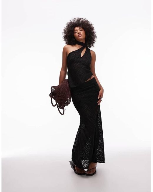 Co-Ord Crochet Midaxi Skirt With Side Split Detail - Brown
