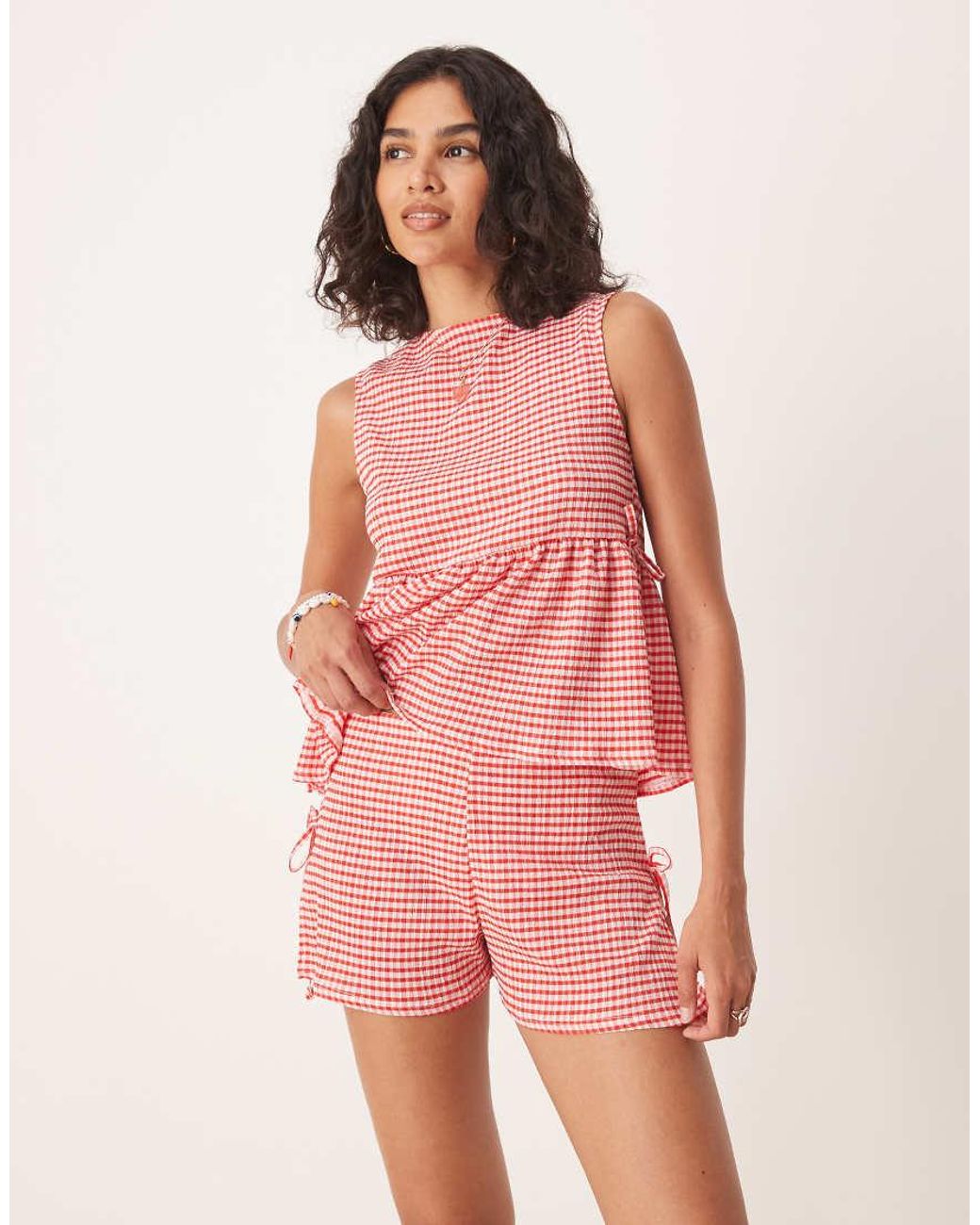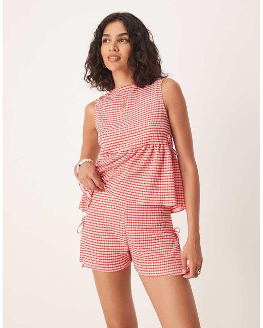 Shorts by ASOS DESIGN Gingham design Tie-side details High rise Regular fit. Polyester/Elastane. Colour: pink