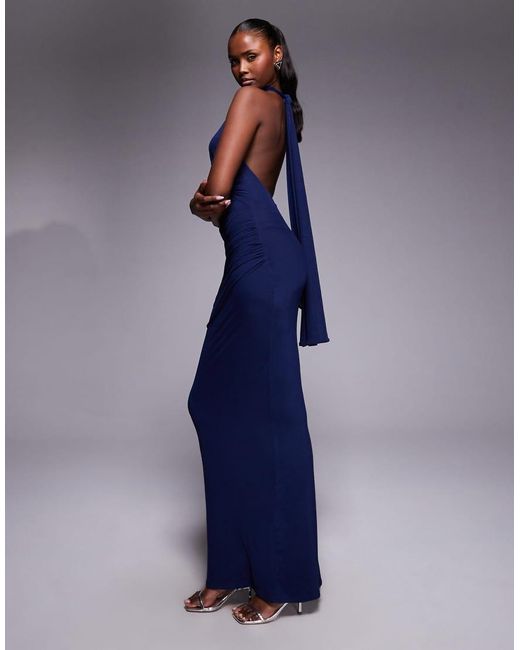 - Twisted Bust Detailing Mesh Maxi Dress With Tie Back Halter Neck
