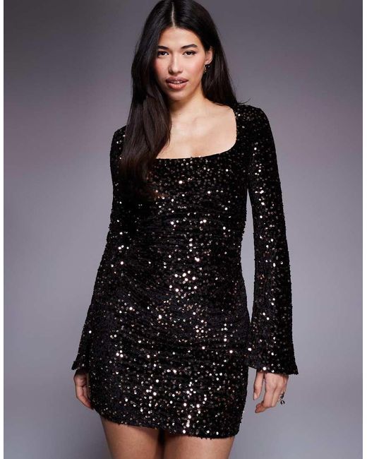 - Velvet Sequin Square Neck Mini Dress