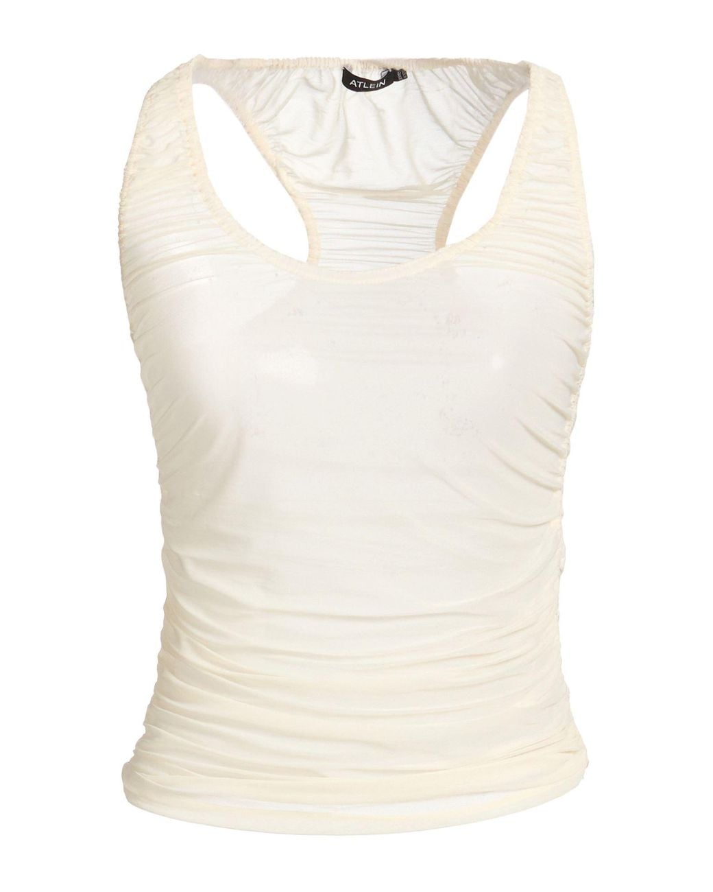 ATLEIN. top, jersey, plain colour, gathered, crewneck, sleeveless, dry clean, do not bleach, do not tumble dry. 100% Polyester.