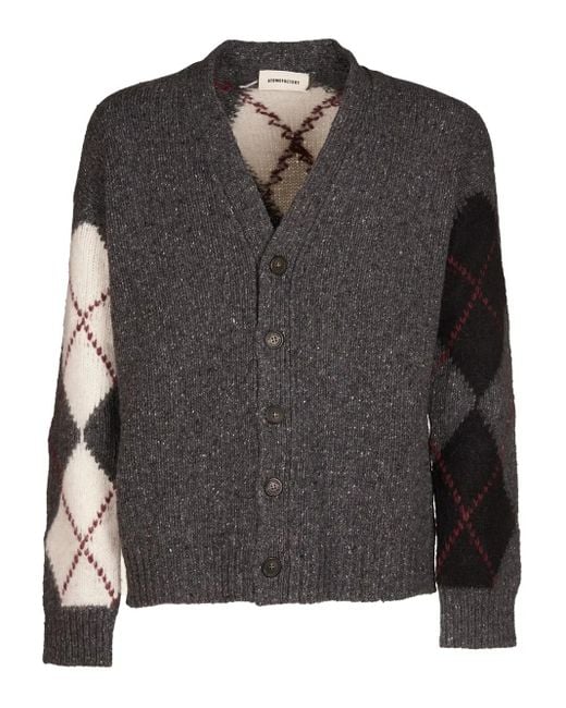 Grey argyle pattern button fastening long sleeves ribbed hem and cuffs Size: S. Gender: Male. Material:Wool. Colour: black