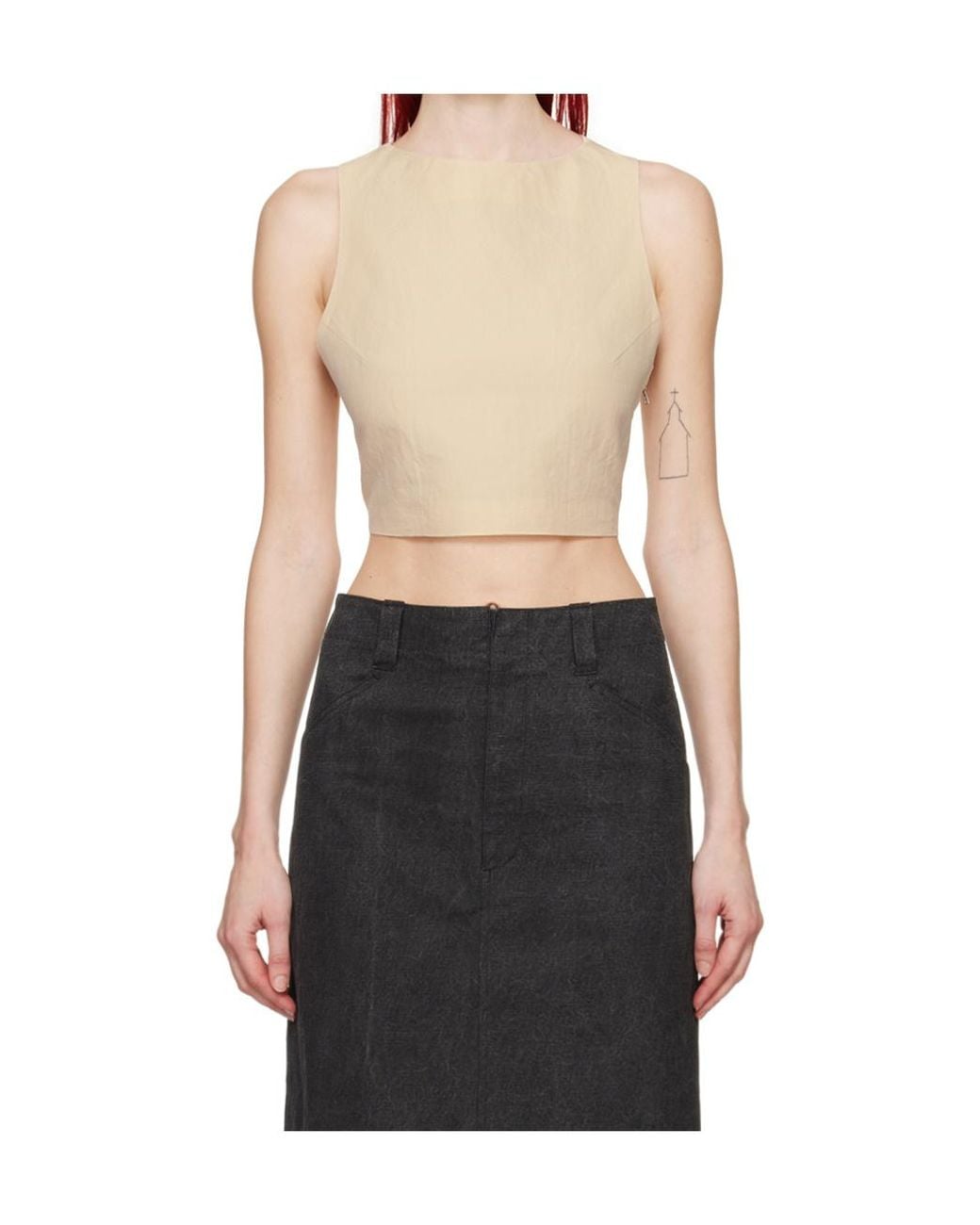 Round neck, cropped hem, side seam zipper, fixed cross shoulder straps, low back design, full cupro satin lining. Colour: black