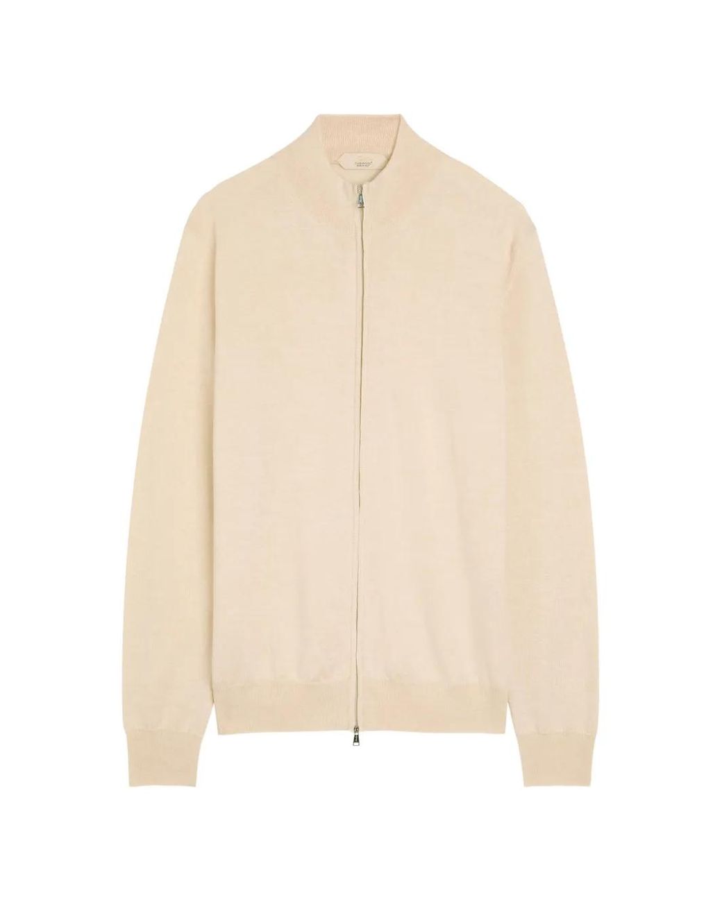 Beige zip fastening ribbed hem ribbed cuffs high neck slim fit Size: S. Gender: Male. Material:Merino. Colour: natural
