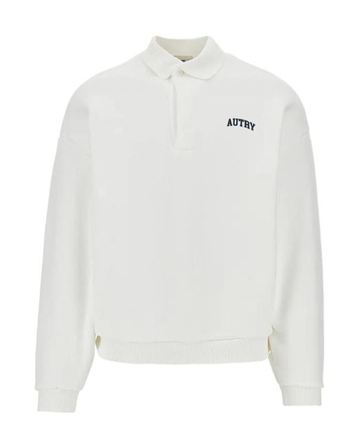 Polo Collar Sweatshirt With Logo On Front - White