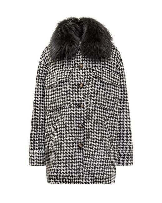 Wool-blend Ava Adore coat with black and white houndstooth pattern and black fur collar. Shirt style with front pockets and button closure. Gender: WomenMaterial: 70% WOOL, 30% POLYESTERColor: BlackMade in: ImportedProduct ID: 31AAFW25 BLACK*Import tax/duty will be calculated at checkout (If applicable) Colour: black