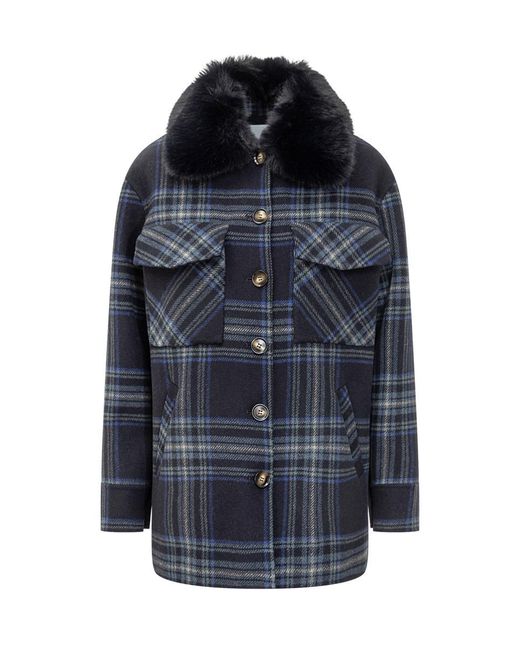 Blue check wool Ava Adore coat with contrasting fur collar. Shirt design with front pockets and buttons. Gender: WomenMaterial: 70% WOOL, 30% POLLIESTEREColor: BLUEMade in: ImportedProduct ID: 32AAFW25 BLUE*Import tax/duty will be calculated at checkout (If applicable) Colour: blue