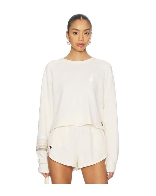 Women's White Bolt Rugby Stitch Cropped Crew Sweatshirt