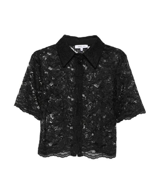 Black lace detail button fastening short sleeves Size: XXS. Gender: Female. Material:Cotton/Polyamide/Polyamide/Elastane. Colour: black