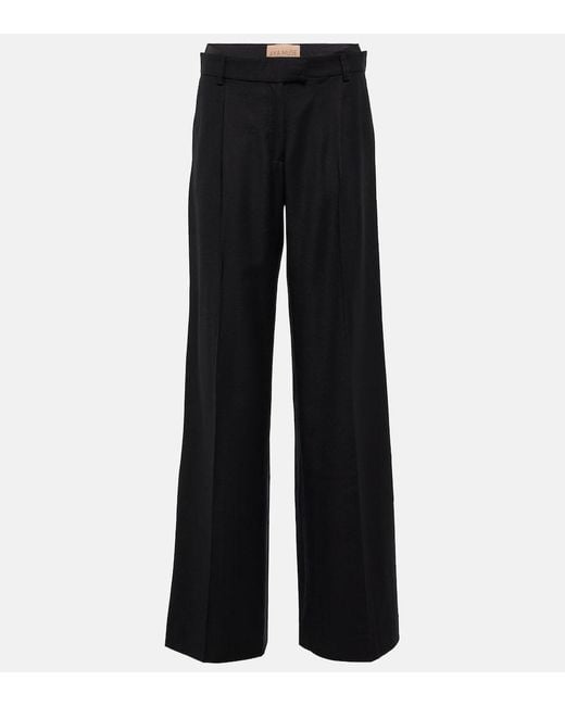 Women's Black Conso Low-Rise Wide-Leg Wool Trousers