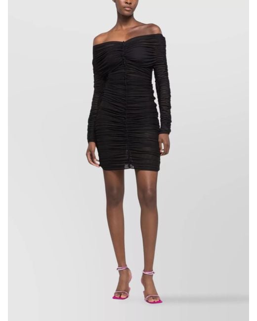 Women's Black Ruched Off-Shoulder Long-Sleeve Mini Dress