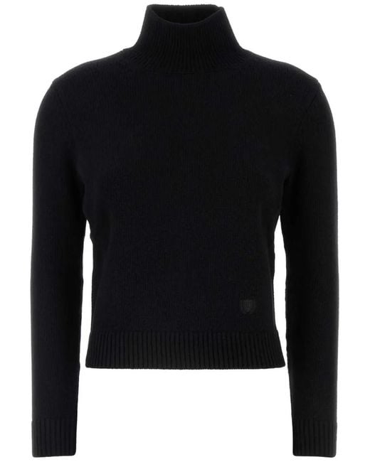 Black wool-cashmere blend knitted construction roll neck long sleeves ribbed-knit edge straight hem Size: XS. Gender: Female. Material:Wool/Cashmere. Colour: black