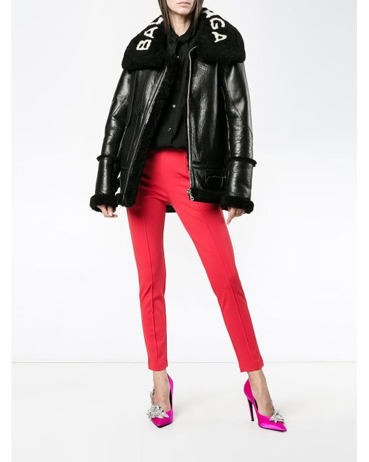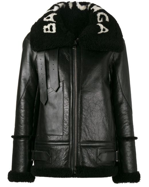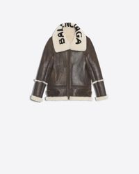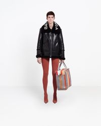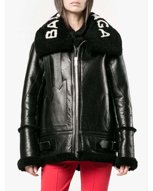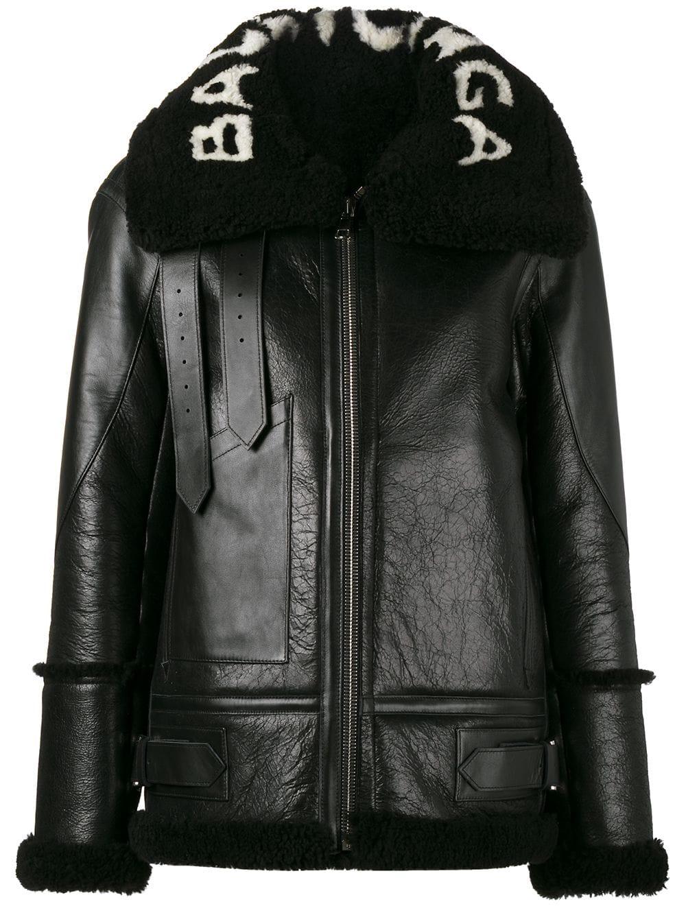 Black Le Bombardier Oversized Shearling Jacket from Balenciaga. Material:Lamb Skin/Calf Leather. Colour: black