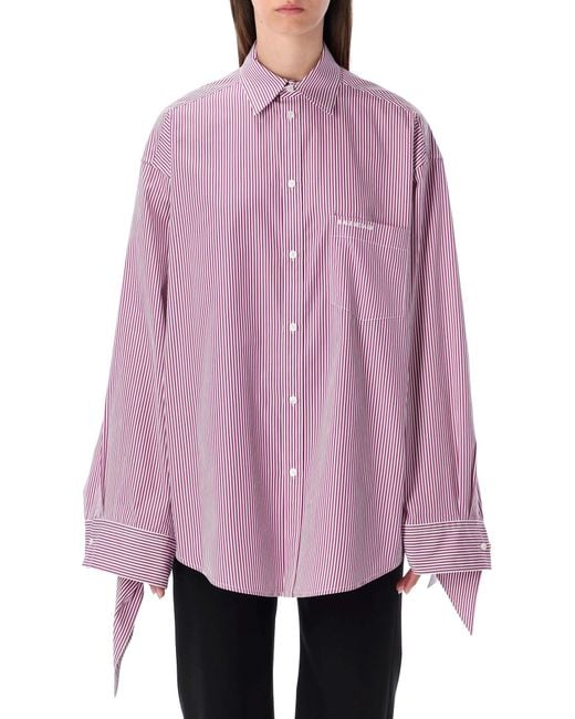 Women's Purple Oversized Striped Cotton Shirt With Knotted Cuffs