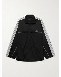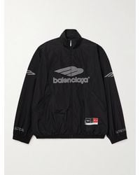 Go to Harvey NicholsStyle Notes Balenciaga's latest drop continues with the label's fusion of oversized silhouettes and vintage sportswear-inspired pieces. Nodding to classic windbreaker styles, this shell track jacket is worked with striped panels and is