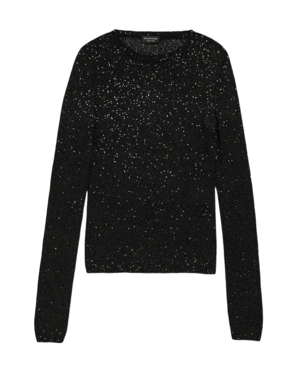 Sequined Turtleneck Long-Sleeve Mini Dress - Black