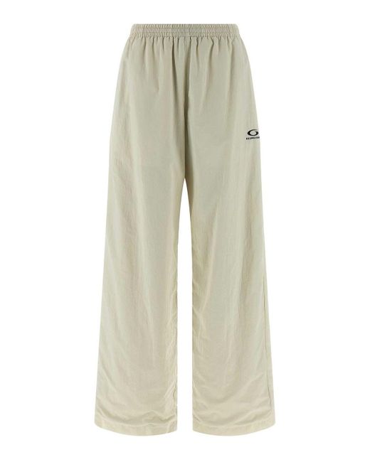 Tracksuit' joggers in wrinkled-effect technical fabric, mesh lining, front logo embroidery, adjustable drawstring elastic at the waist, pockets, wide and straight leg. Colour: natural