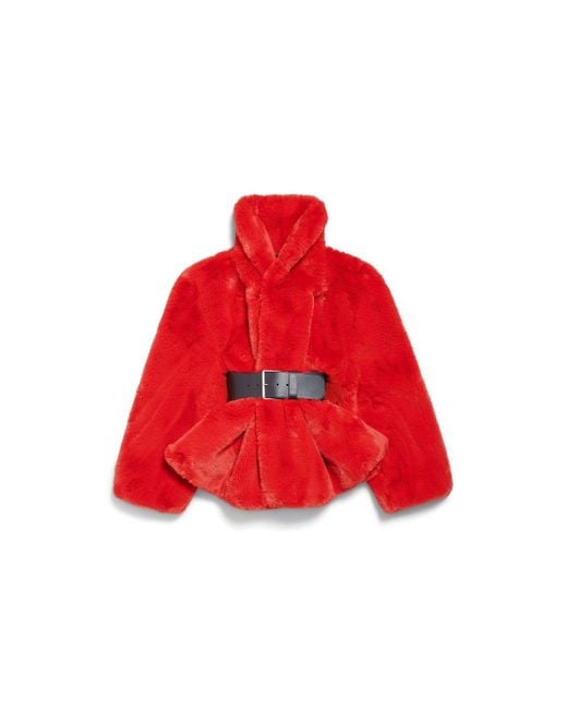 Women's Red Wrap Animal- Free Fur Coat