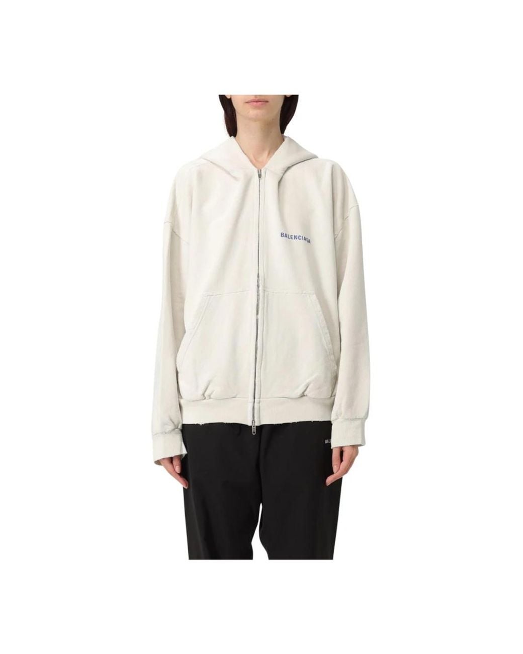 Balenciaga Zip Up Hoodie delivers a cosy, layerable option designed for everyday casual wear. Key attributes: White | Zip fastening | Layering-friendly | Hood | Casual silhouette Colour: white