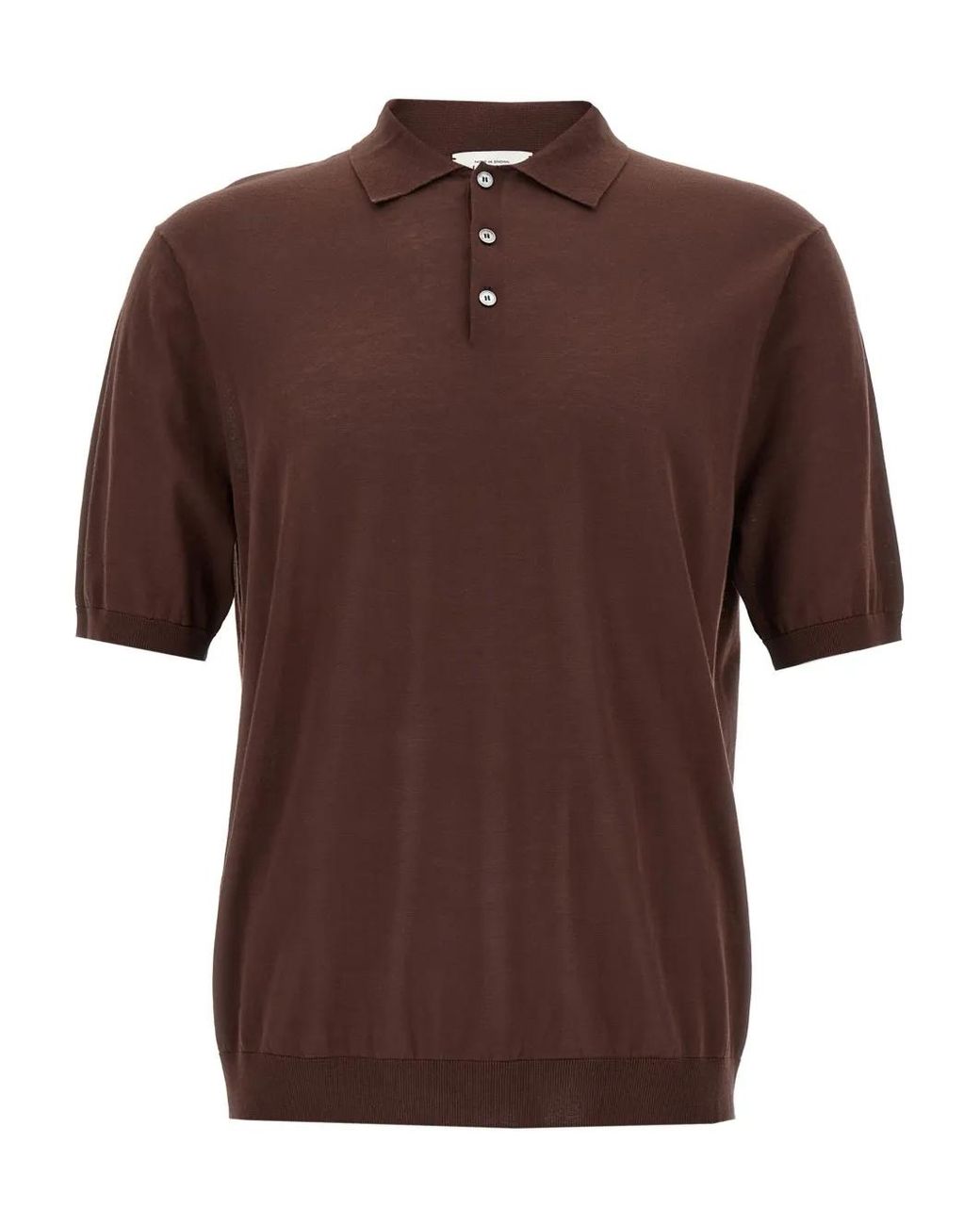 Chocolate brown button placket ribbed collar short sleeves ribbed hem Size: 50. Gender: Male. Material:Cotton. Colour: brown