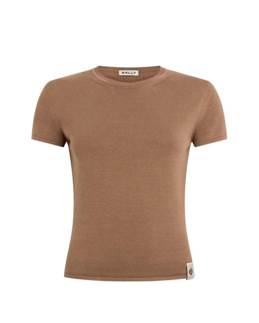 Camel brown ribbed knit short sleeves round neck Size: 36. Gender: Female. Material:Cotton/Silk. Colour: brown