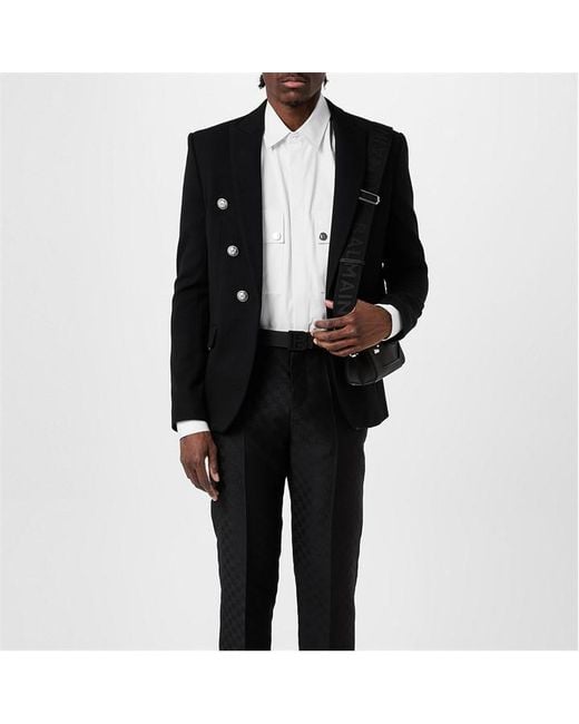 Men's Black Button Notch Collar Cotton Long Sleeve Blazer