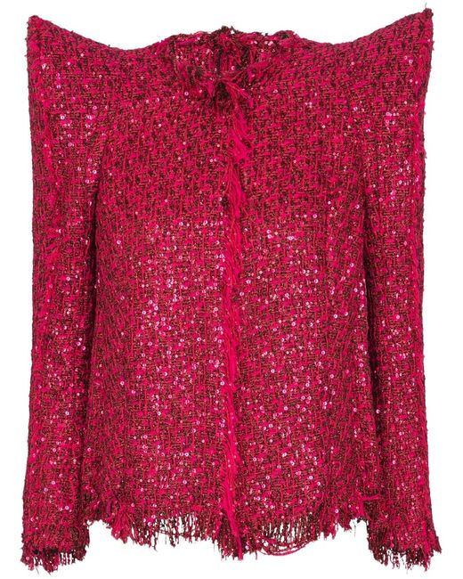 Women's Red Glitter Tweed Jacket